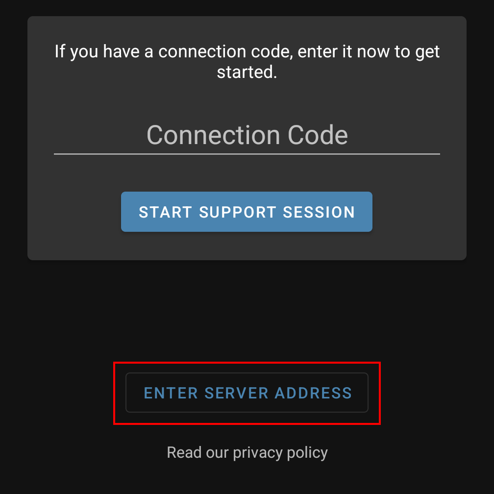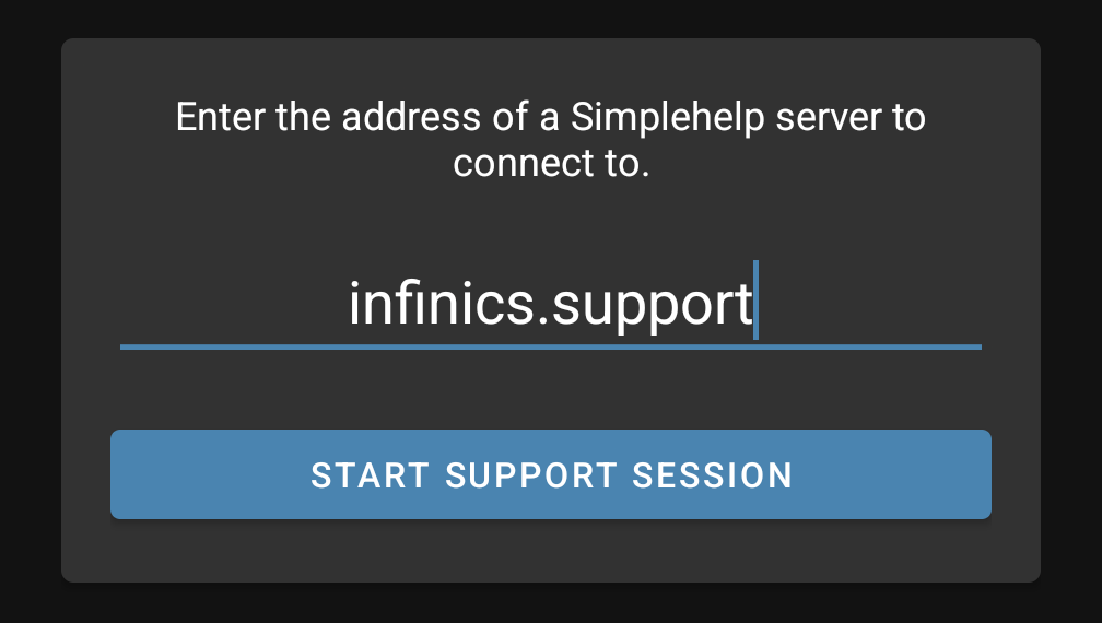 In the Server Address box, type infinics.support, then tap Start Support Session.