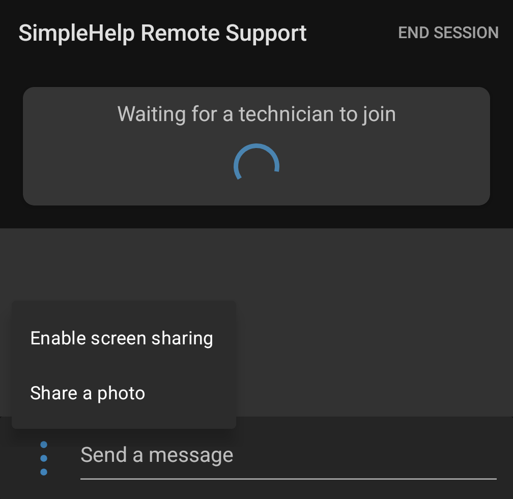 You will see a "Waiting for a technician to join" message. Once we're connected, tap the … button in the bottom-left corner, select Enable screen sharing, choose Share entire screen, then tap Share screen.